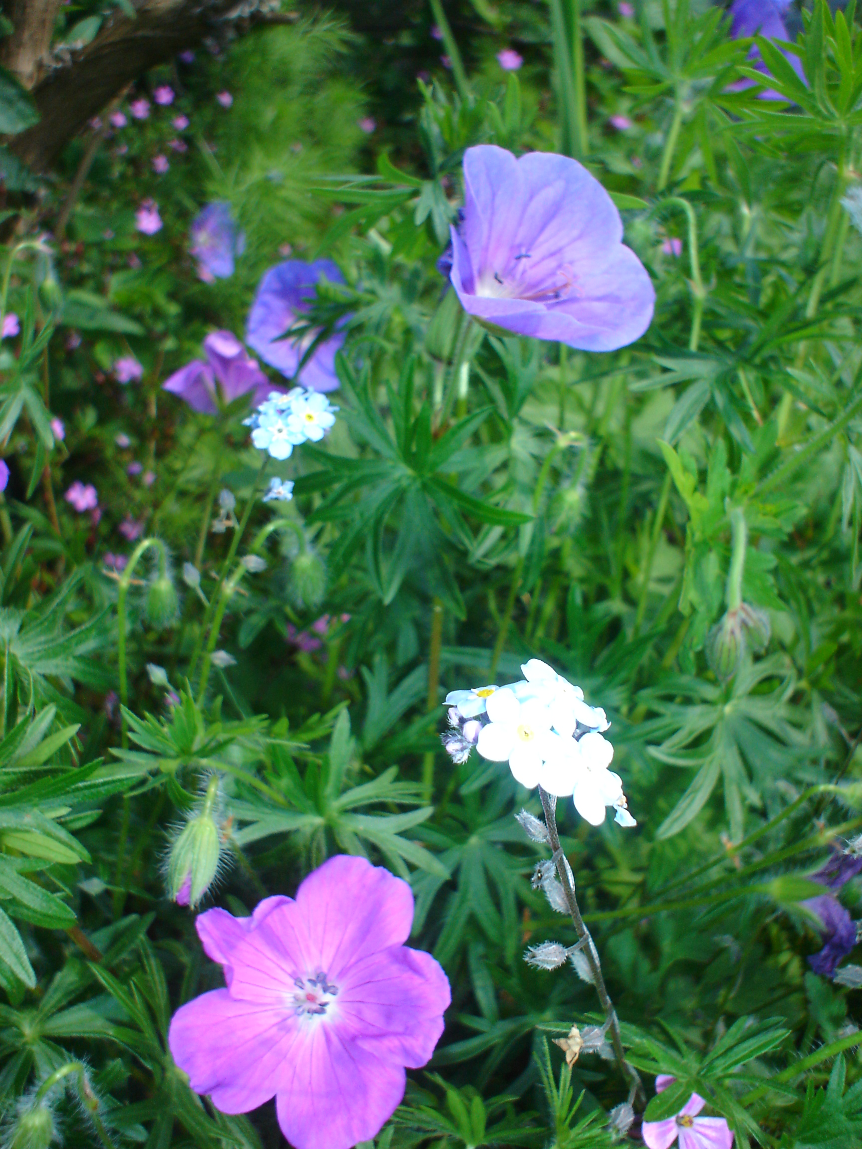 One of my all time favourite flowers is up now perennial geraniums.  I have lots of different varieties blues, pinks and dark purple.   This is the month when everything speeds up so much, from day-to-day the growth in the garden gets more dense.  Unfortunately that also includes the weed which seem to grow twice as fast as the plants!