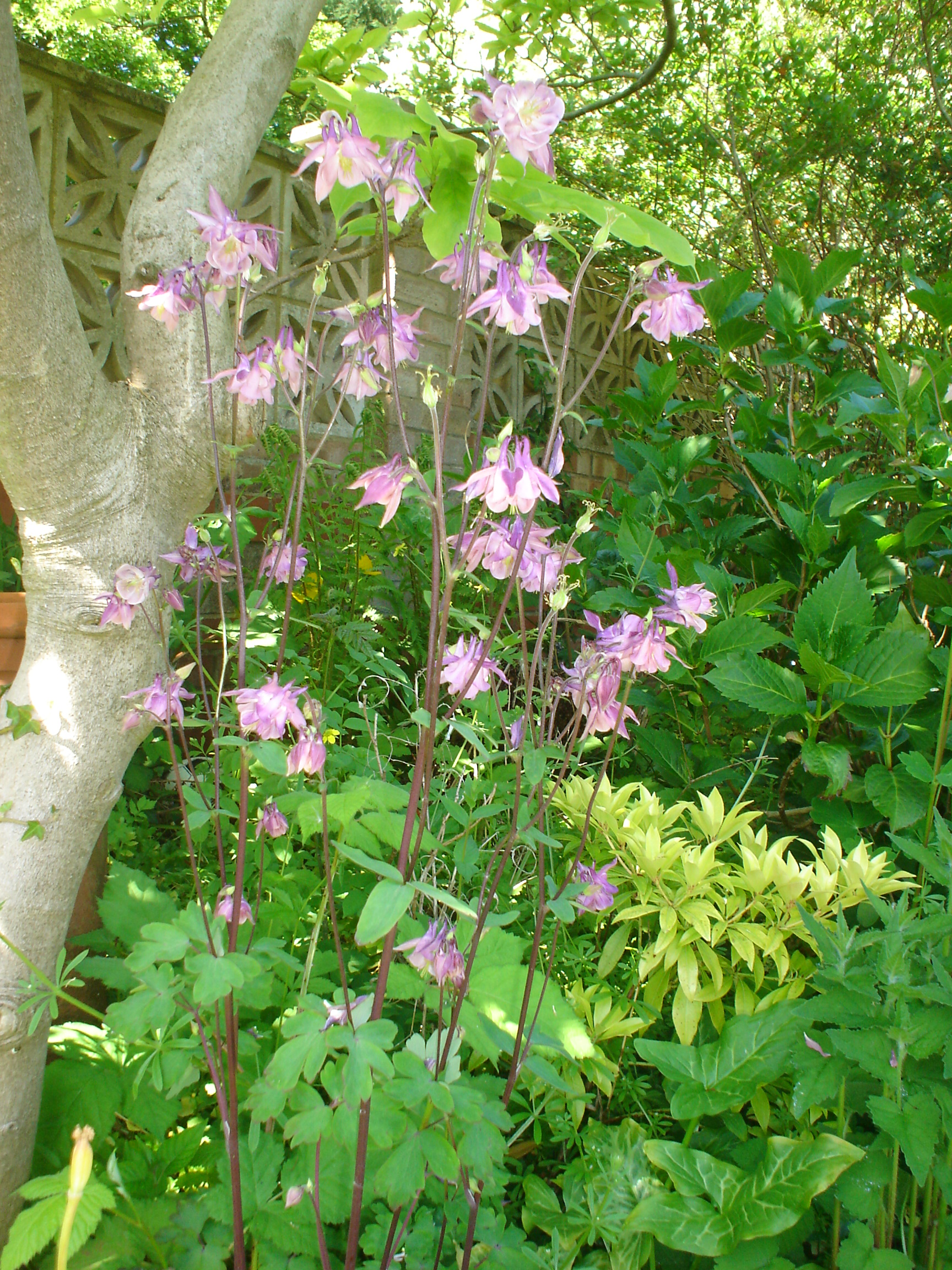The pictures above show two geraniums, some Aquilegia which have self seeded all over the garden and  a flame coloured azalea.
